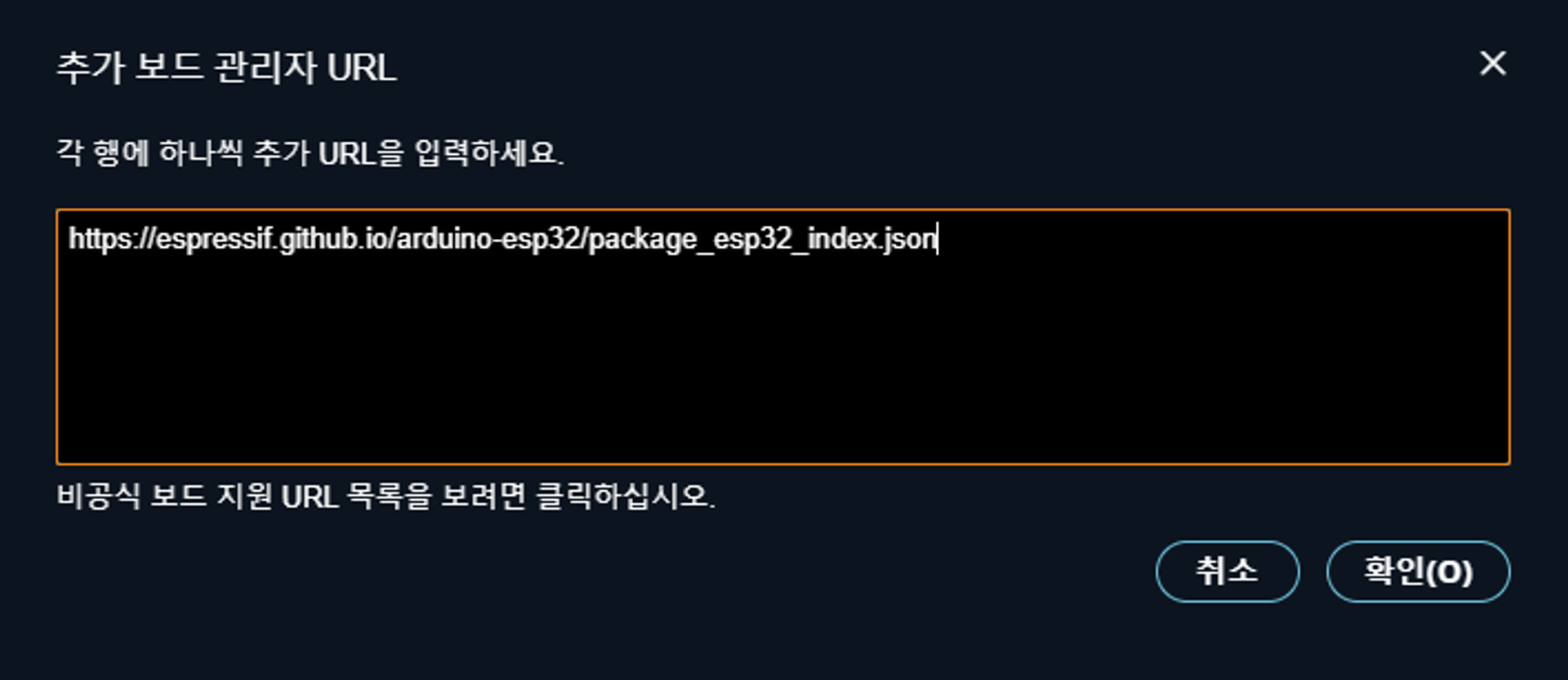 추가 보드 관리자 URL에 아래의 주소를 카피해서 넣어줍니다.