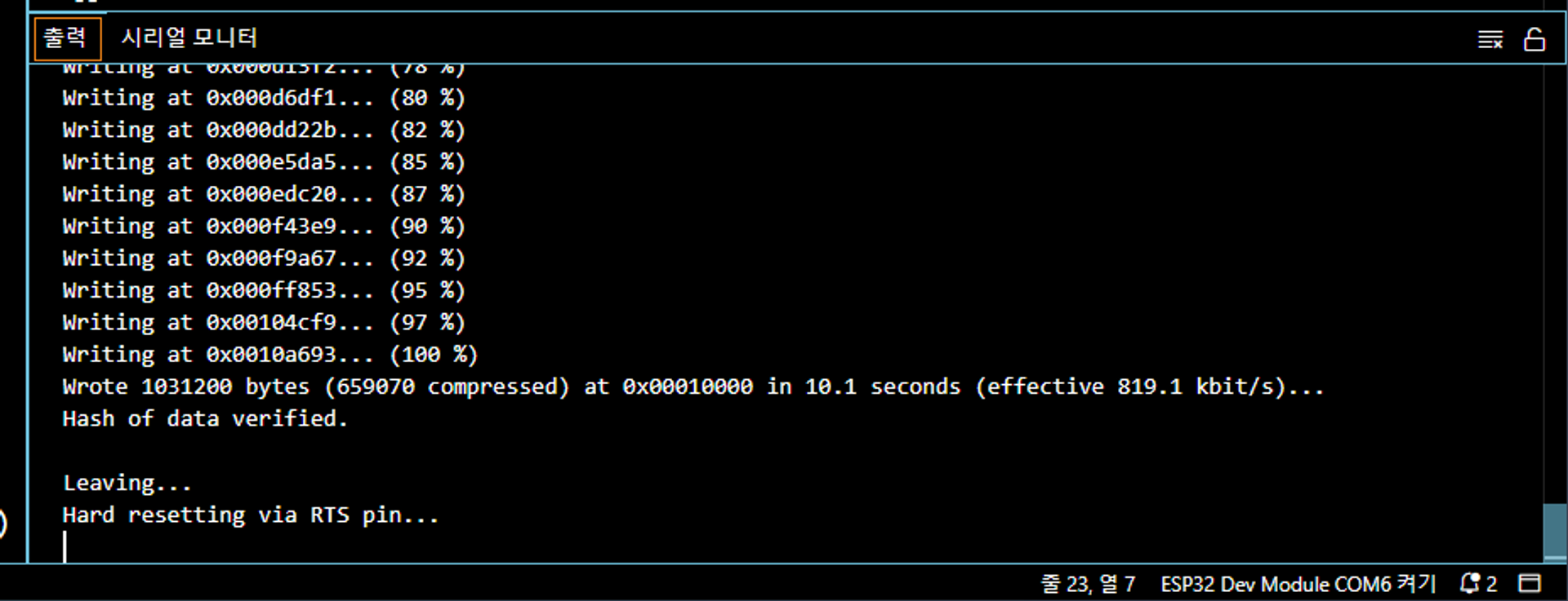 출력에 아래와 같은 내용이 나오면 정상적으로 업로드가 완료되었습니다!