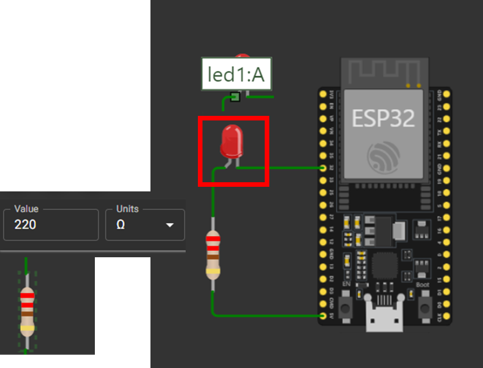 저항은 220Ω으로 설정하면 됩니다.