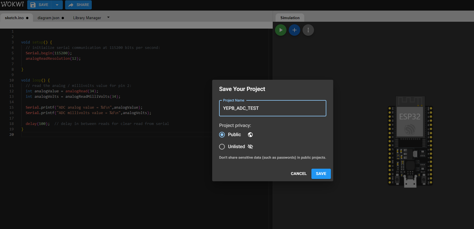 wokwi에서 ESP32 아날로그 값 읽는 방법
