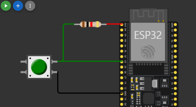 이렇게 되면 GPIO 33번 핀은 항상 HIGH(1) 값을 가지고 버튼을 클릭하면 LOW(0) 값을 가지게 됩니다.
