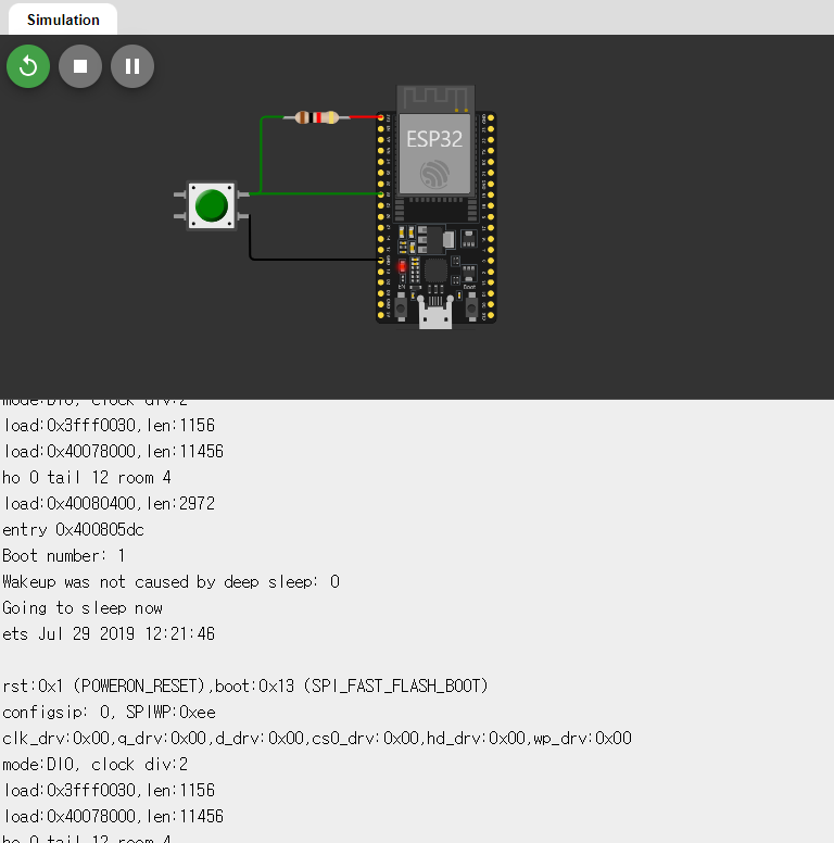 wokwi에서는 deep sleep mode가 정상적으로 확인하기가 어렵습니다.