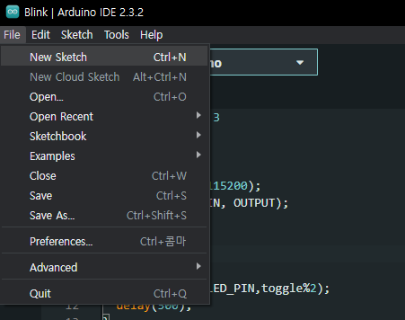 파일 → New Sketch를 선택해 주시면 새창이 팝업됩니다.