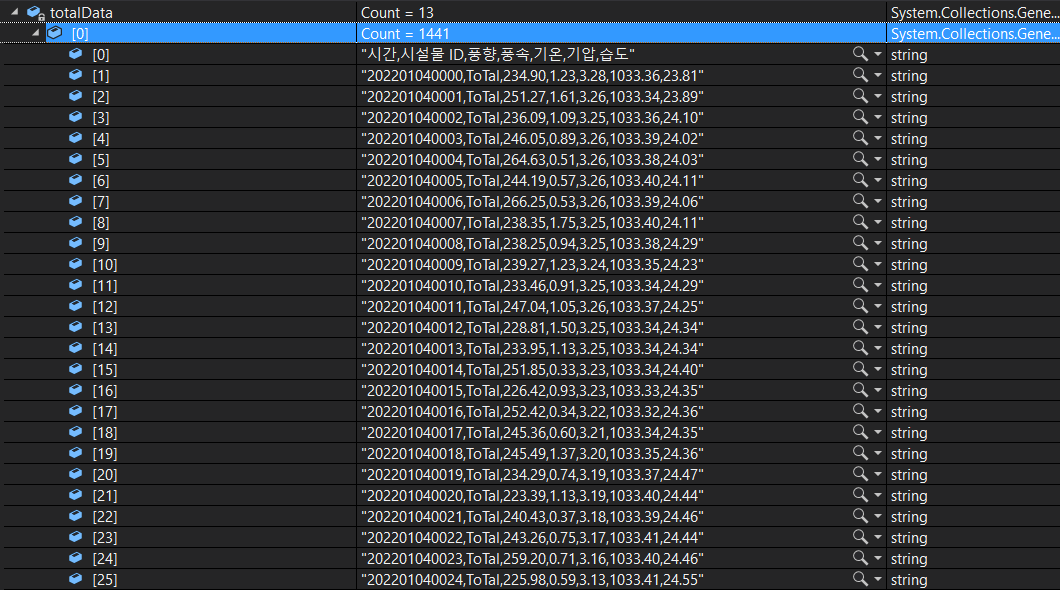 totalData.Add(fileData); // 2중 리스트에 fileData 리스트 값 저장