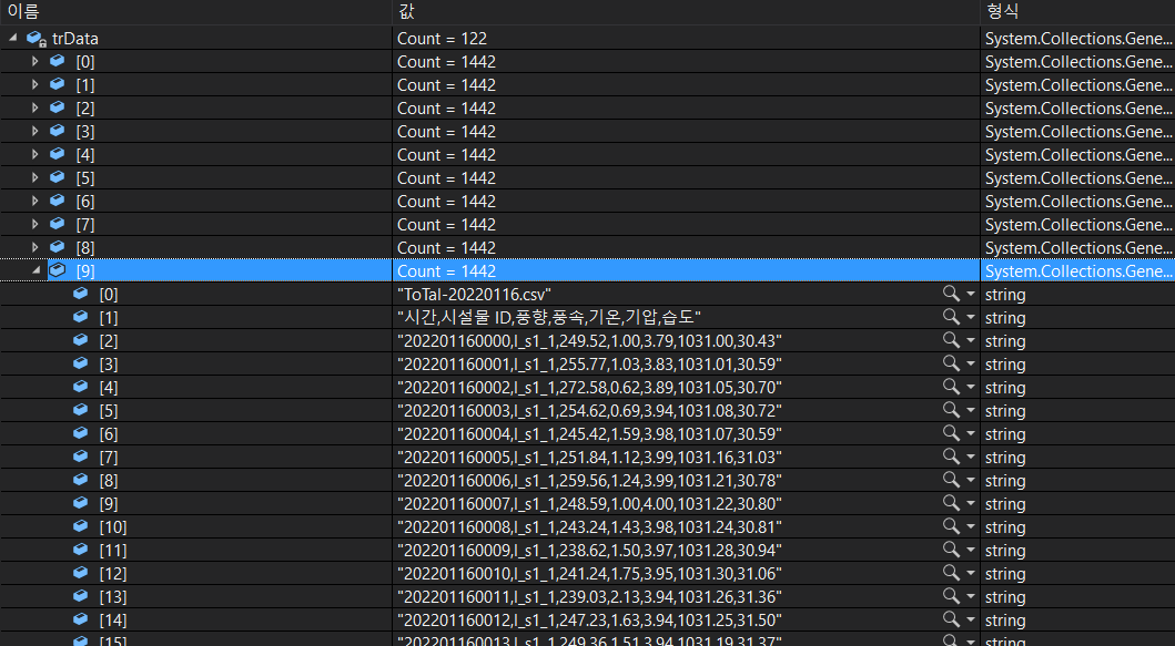 여러개의 데이터 리스트 값들을 정렬하고 나머지 값들도 같이 정렬해야할 경우엑셀에서는 필터 버튼 한방인데.. ⭕ 사용 예제 그림의 왼쪽 시간 정렬된 데이터를 오른쪽처럼 data1 최대값을 기준으로 내림차순 정렬하려 할 때 🍺 코드 예제C 기본 정렬 코드에서 mod1, mod2 나머지 부분을 sample과 똑같이 움직여주면 된다static void sortAvg(List sample, List mod1, List mod2) // sample 을 따라가는 나머지 값 2개{ for (int i = 0; i 이 코드는 "sample" 리스트를 기준으로 "mod1"과 "mod2" 두 개의 리스트를 함께 정렬하는 함수입니다. 함수는 "static"으로 선언되어 있으며, 파라미터로 "List" 타입의 "sa..